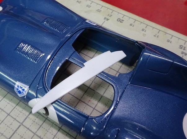 スロットカーなので、スクリーンやライトカバーの接着にある程度の強度を持たせるためにGクリアを使っているのだが、(承知はしていても・・・)接着面が汚くなってしまったのにはガッカリしている。(涙)
