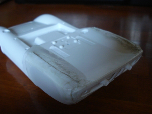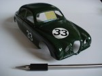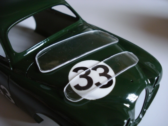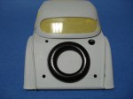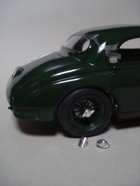 後はリアのスペア・タイヤのカバーをヒート・プレスで製作したのだが、これはキットのゴムタイヤを直接プレスしてみた。 (タイヤを塩ビから引っ張り出すのに苦労したが、タイヤカバーなので、こんなラフな感じで良いかな~?と思っている。 問題はこのカバーの上に付くゼッケンサークルなのだが、薄いプラ板を最初から中心に乗せてから、プレスすればよかったかな~?などと思ったりもして・・・・。)