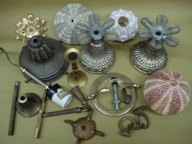 これらのがらくたは、殆どが古い天吊りタイプの照明器具のシェード・