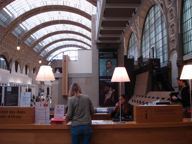 オルセーは入り口を入ると直ぐに昔の吹き抜けのホームなので、真ん中はガラス天井