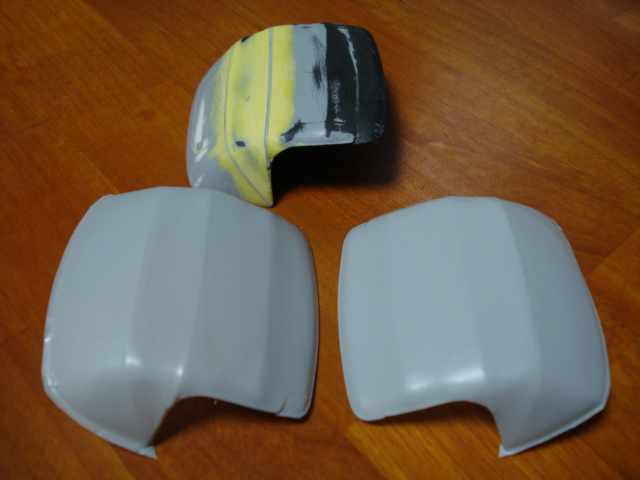 ここの所雨の日が続いていたので、昨晩遅くまとめて3台にクリアーを吹いてみた。