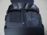 FT36が搭載可能になったコグレの後期版のシャーシーは、フロント部分の軸受けがセパレートされた作りになっている。 サスの様なガタを持たせた日模のシャーシーによく似ているのだが、日模は縦付けでコグレは横付けの違いはある。 コグレの場合はフロントの軸受けのつなぎ部分に丸みを持たせ、故意にガタ(サスのつもりか?)を持たせる様な構造を取っている。(このガタが上下だけなら良いのだが、左右にステアリングの様に結構動くのだ・・・。) 古いスロットカーは、基本的には後輪とガイドの3点支持が一番集電効率が良いのだが、この後期版のシャーシーはストロークの短いスイング・アームも付くようになり(当時の流行か?)、なぜコグレはこの様なシャーシーに改良したのかがいまいち良く判らない・・・。 初期のシャーシーはレベルやAMTと同じようなシンプルなラダーのアルミで、・・・どちらかと云えば、外国物よりコグレの方が強度も有りそうだし、私は使いやすく好きだった。 ・・・話が脱線したが、今回はこの軸受け部分のブラスのリベットを外し、固めの薄いスポンジを切り出して挟んでボルト固定してみた・・・。 固定に使用したボルトの頭が大きいとシャフトに当たる可能性があるので、3mm物を使うのであれば頭を少し削る必要が出てくる。