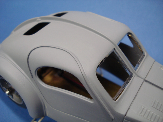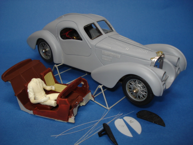 なんだかな~・・・? 遠目で見ればアトランティークの57SCには見えるのだが、近くで見ると微妙にバランスが崩れているし、またフロント周りのパテ盛りの修正跡も結構気になるな~・・・。
