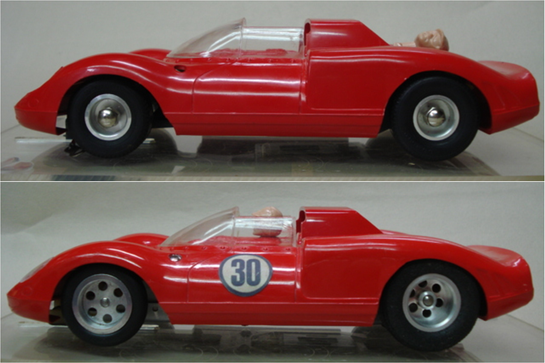 また スロットのボディーキットで、コブラのブルーのボディーは時々見かけるのだが、このポルシェのボディーキットだけは今まで見かけた記憶がない・・・。 これは、キットの発売時期が遅くピークから外れてしまったからか?、リア・トレッドが収まらない為に売れなかったからか?・・・。 販売不振で、いち早く元型をスタティック・キットに切り替えてしまったからなのか・・・?