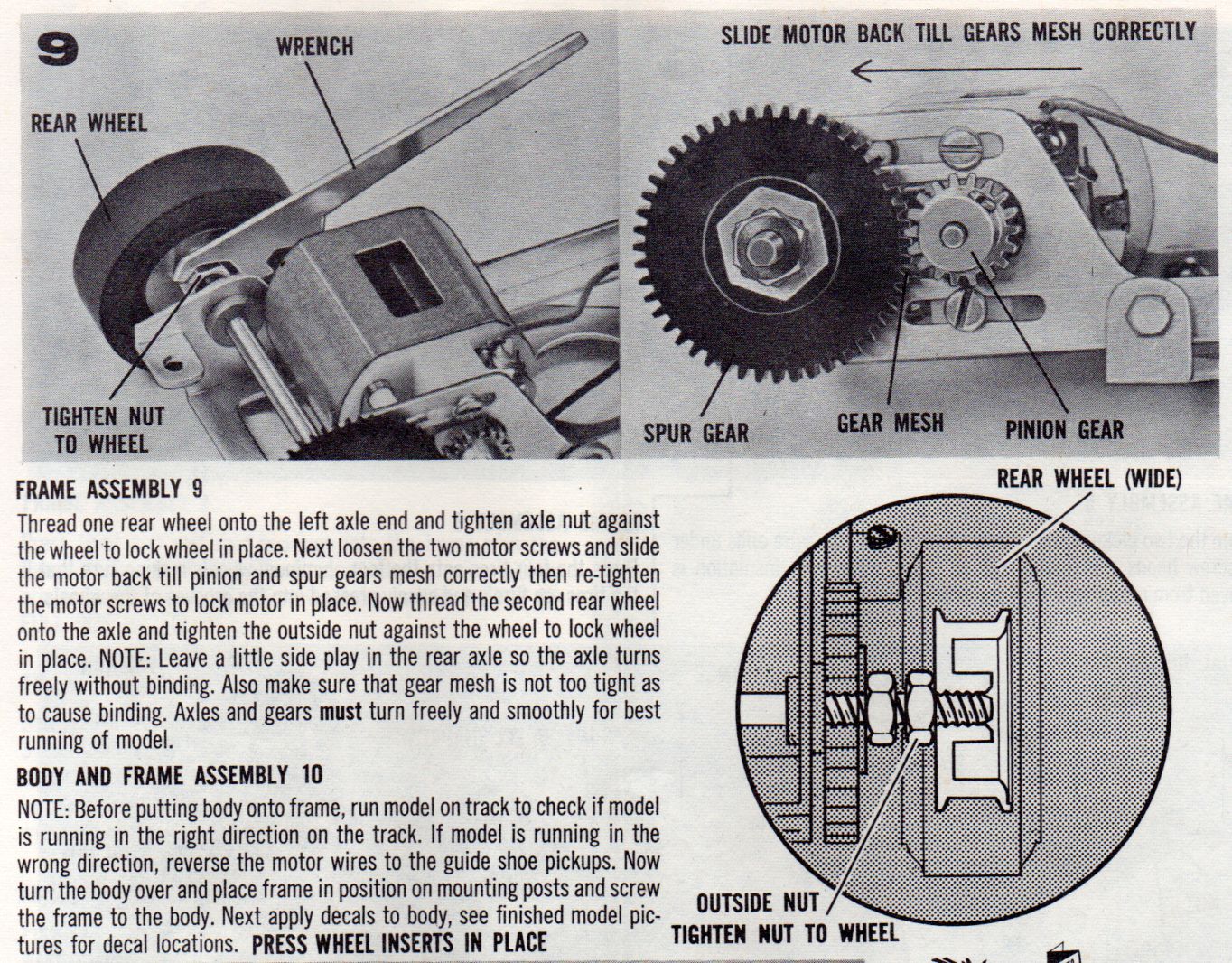 少なくともピニオンだけはCOXと同じような薄めの打ち込みタイプのものにして販売するべきだったと思う。 Rasskitやタミヤはリアホイルにスーパーギアが付いた特殊なホイルを製作してこの問題に対処しているが、LINDBERGはそのままキットとして販売してしまった。 ・・・インスト通りに組んだのではやはり5mm程、タイヤがボディーからはみ出してしまうのだ。 キット自体もバラバラにパーツがブリスターの中に入っているのではなく、シャーシーはすでに借り組状態でパッキングされている。