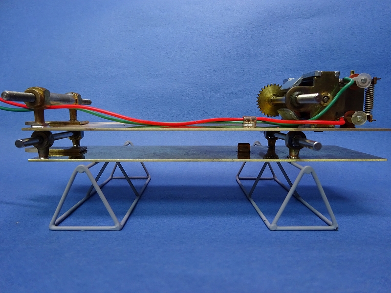 一年程前に作ったD-Type は、Dynamic の吊り下げ式のシャーシーを改造して使ったので、車重が重くなったくらいでクリアランスにはそれほどの問題は出なかった。  今回はメインフレーム(1.5mmの真鍮板)の上にデベステーター・モーターを搭載したのでクリアランスが1.5mm程になってしまい、モーターを固定するビスの頭の位置では0.5mm程になってしまっている。(インチの長い皿ビスがあればよいのだが、見つからなければ、今のうちに現行の皿ビスに変えておいた方がよさそうだ。)