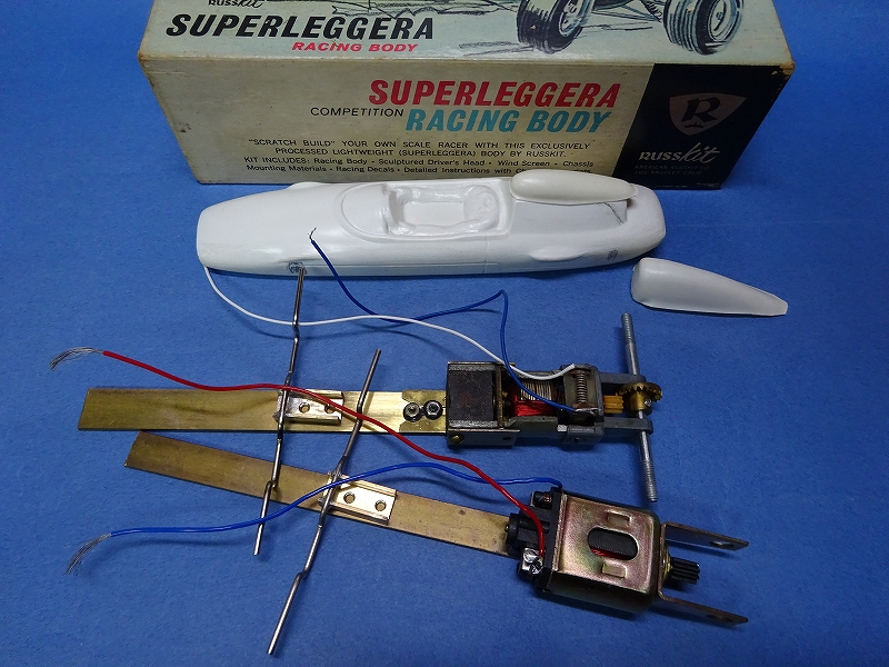 今回も時間つぶしに始めてはみたのだが、昔の問題点の解決策が見つかった訳ではなかった。 ・・・作るきっかけになったのは、このキットのワイヤーホイルに丁度合いそうなインナーホイルが見つかったからなのだ。(私の作る車は、殆どがスロットカーばかりなのである・・・。) 写真でも判ると思うのだが、イタレリのホイルの内側から、丁度サイズの合う古いねじ切りホイルをゴム系接着剤でしっかり留めている。 意外とブレ無く止まってはいるのだが、経年変化にはどうなのだろうか? ・・・それはサカツウのフィッティングホイルも同じだとは思うのだが?!