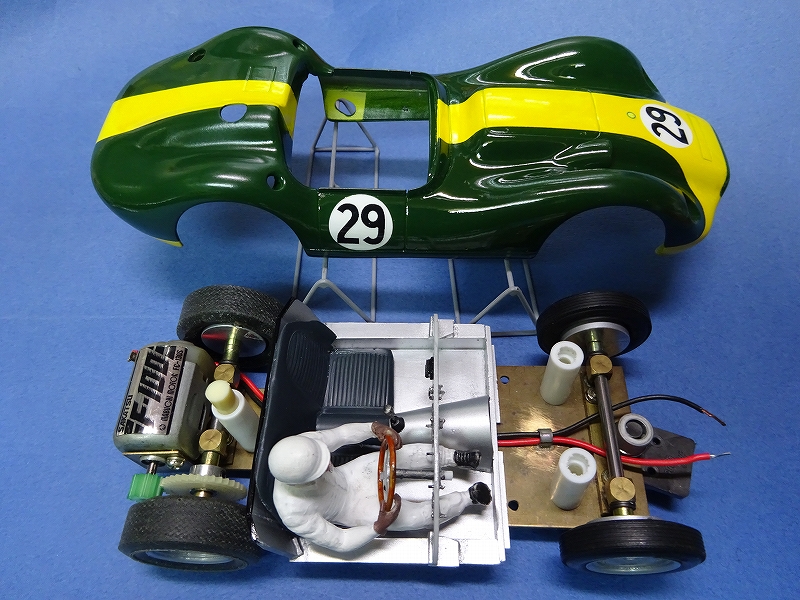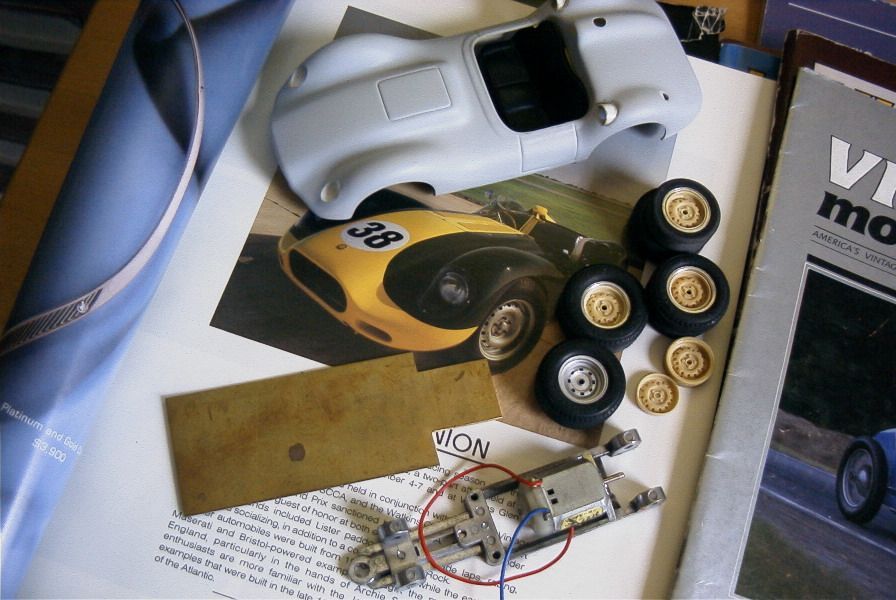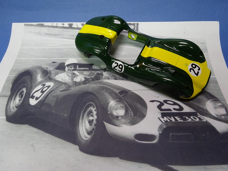 大分悩んだ末にターゲットに選んだ車は、1958年にシルバーストーンでモスが最初に乗ったリスターにすることにした。 本来であればフロントノーズ上にインレットのエアスクープとリアにもスクープが有るのだが、スロットなのでフロントのボディー強度を考えて、両方とも罫書の表現にとどめた。
