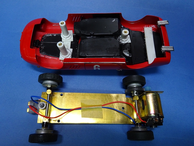 とりあえず、自作シャーシーにボディーだけはマウントさせたのだが、ギヤ比やタイヤの接着、削り等は現時点では手つかずの状態である。