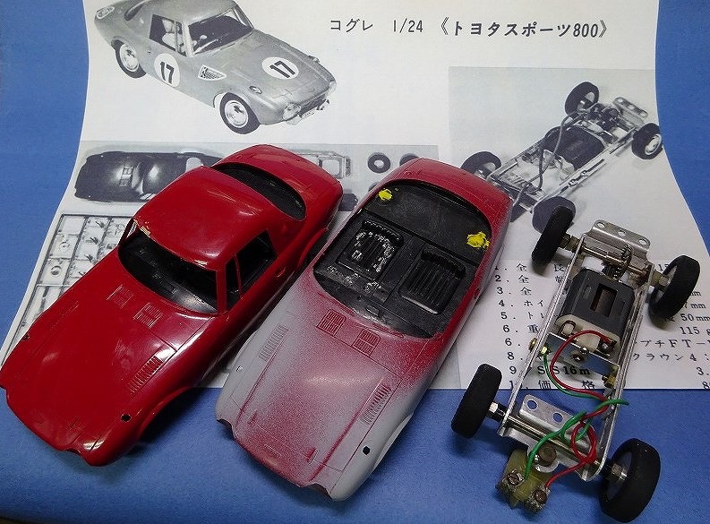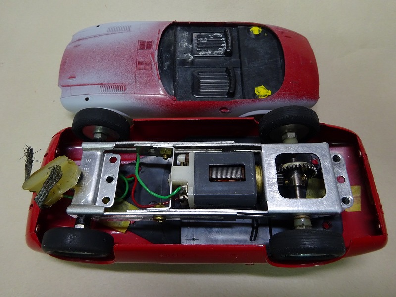 工作机に向かえたのは5日以降で、殆ど通常の生活に戻ってからだ。 今回手を付け始めてしまったのはコグレのヨタ8で、それもコグレの手持ちのジャンクの中では一番状態の悪いトップが既に切り取られていると云う、トリアージュ的に言えば殆ど救いようのない状態のボディーが付いているもの・・・!                    ・・・どう云う訳か、私はゴミに近い車から手を付ける傾向を持っている。(涙)