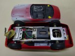 面白いことにコグレの古いスロットカーの中でも、ヨタ8だけはホイルベースが短く、初期のFT16用のアルミラダーのシャーシーしか入らない。 後期型のフロントの軸受けが別付けになっているシャーシーでは一番短い状態にシャーシーを組んでも多少長くなってしまう。 最近ではこの初期型のラダーフレームもあまり見かけなくなってきているので、初期のメルセデスかコルベットの物を流用するしかなくなっている。