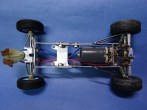 エグゾーストをボディーではなく、今回はシャーシーフレームの方に取り付けて、シャーシーの脱着を簡単にしようとの思いから、横から多少見えてしまうシャーシーにシルバーを吹いてみた。