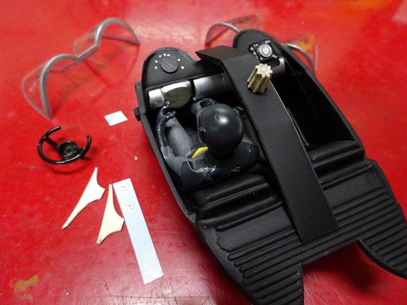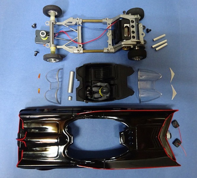 既にシャーシーも用意されて長期放置車両になっていたこのフーチュラ改造のバットモービルだが、当時結構ボディーにも時間をかけていたし、このままゴミにしてしまうには可愛そうなので、暑いさなかに無理をして製作したと云うところが本音だ・・・。 やはりこのクラッシック・バットモービルを作るのであれば、ボディーが多少大きくなるがポラーライツのキットが簡単でお薦めだ。