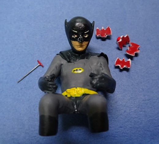 ・・・実の所、子供の頃に外で遊び疲れて帰って来て、たまたまTVで見たこの「バットマン」を初めは面白半分で見ていたのだが、子供ながらに小学校の海水パンツをはいて飛び回っている様で、あまりカッコ良いとは思わなかった。 これは「スーパーマン」を見た時も同じであった。 これらのコミックのヒーローものより、「ショック」と云うタイトル名で当時深夜に放送されていたクラッシック・ホラー(フランケンシュタインの怪物やドラキュラ等)や「ルート66」の方に興味をそそられていた事を覚えている。