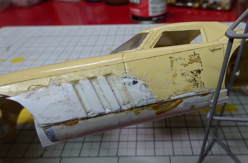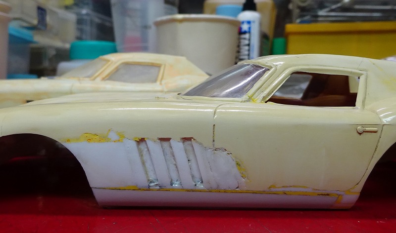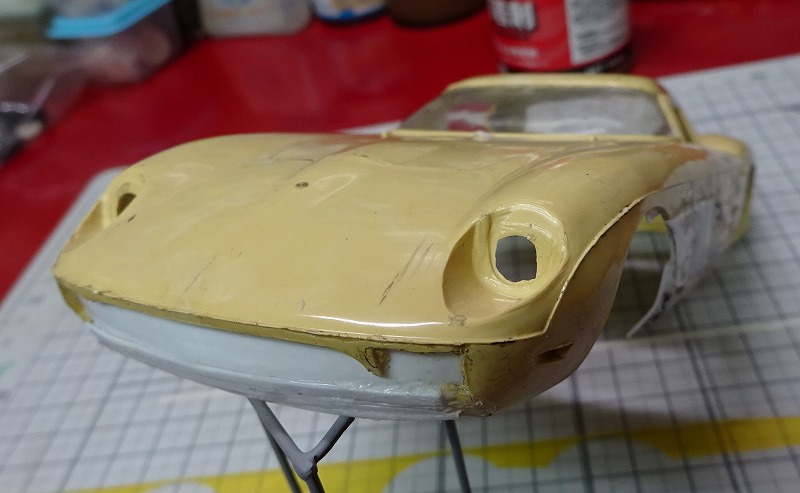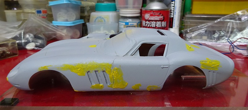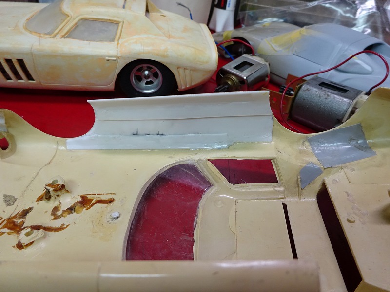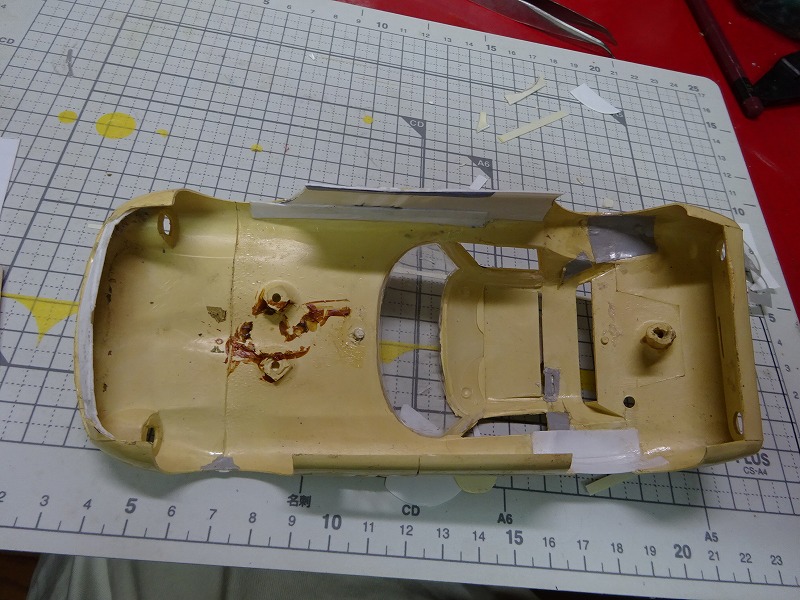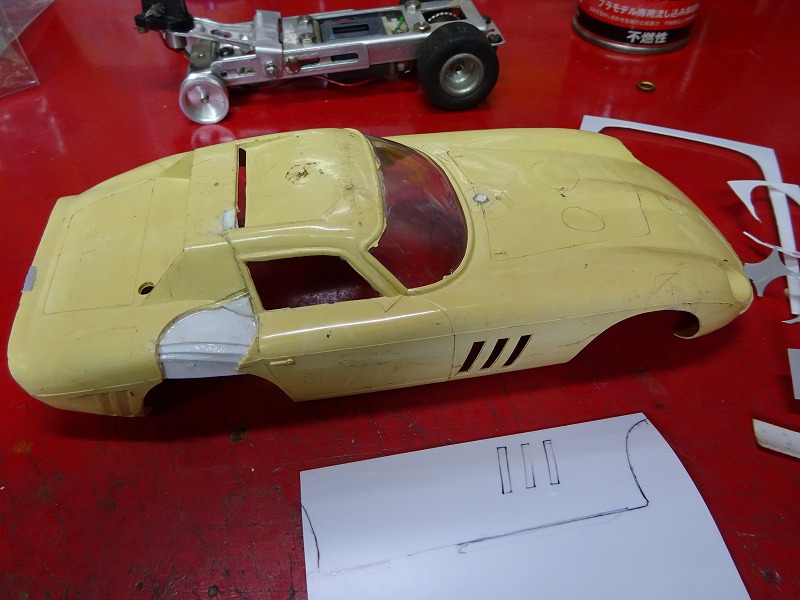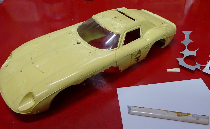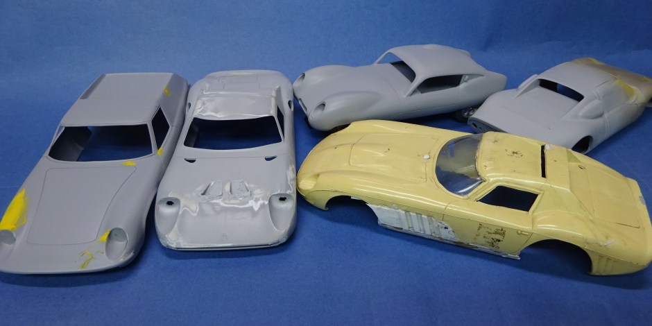 以下の写真は今月いじっていたボディーの幾つかだが、コグレの 64年のフェラーリ250GTO-LMのボディーには久しぶりに遊ばせてもらった。(笑) ・・・プラ板と溶着剤で欠損部を製作してみたのだが、以前に溶着剤を使いすぎたせいか?、引けが出てしまったボディーもあるので、しばらく様子をみてからフロントやサイドの穴あけをしようかと考えている。 また先日作ったスピードホイルを付けてみたい車もでてきたりして、毎晩違う車をいじっている様な日々であった・・・。