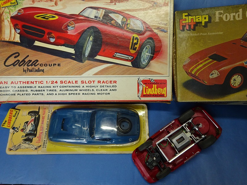 リンドバークのコブラ・クーペは60年代の赤いスタティックキットのボディーを使っているのだが、ライトハウジングを大きくしたり、フロントカウル上のダクトなどを製作したりしていて、左右のドアにRを付けるのを忘れてしまったのだ・・・。 おまけにシャーシーもどうしたものか?と色々やっている最中であった。