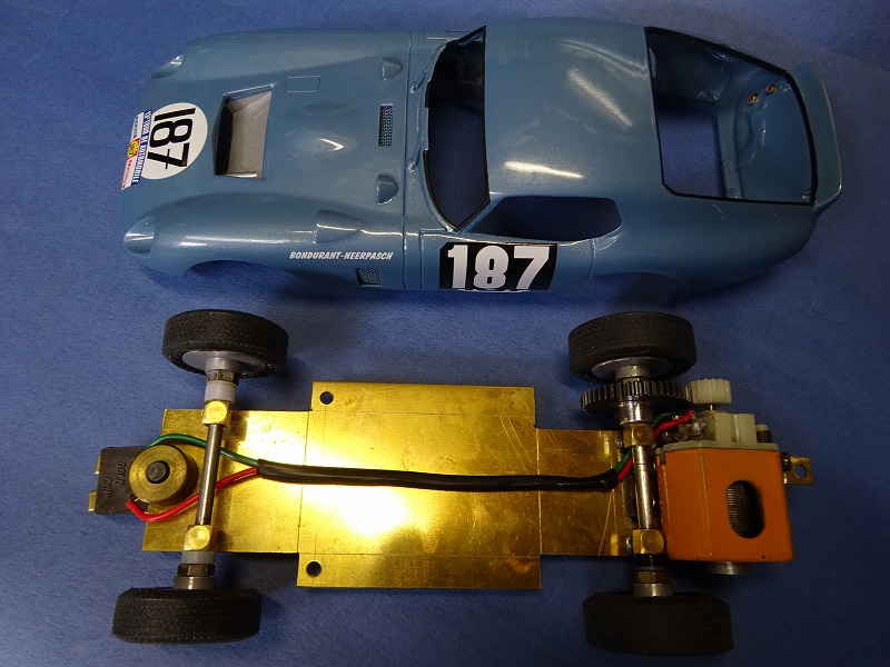 前回のK&BのシリーズⅡの修復をする時に久しぶりに引っ張り出してみたのだが、改めて見てみるとリアのホイルアーチ後部のオーバーフェンダーなども再現されていて、初期のピート・ブロックが製作したプロトタイプのレーシングシーンの雰囲気を結構表現していることに気づかされる。(K&Bの初期型のボディーにはこのリアフェンダーの修正跡は見られないし、シリーズⅡはなぜライトハウジングも大きく直さなかったのだろうか・・・?)