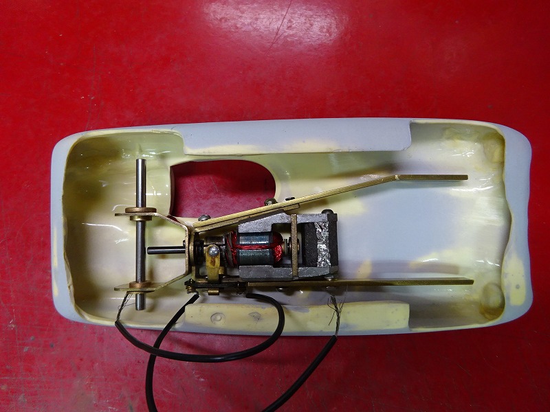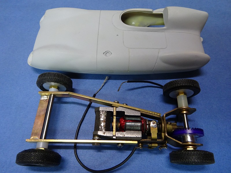 今回の車にもピットマンタイプ(今回はTYCOの#901の6V)の古いモーターを使用したのだが、いつも作るパンシャーシーではなく、今回もラダーフレームになってしまった。 レコード・ブレイカーに6Vのモーターではいささか心もとない。(笑)
