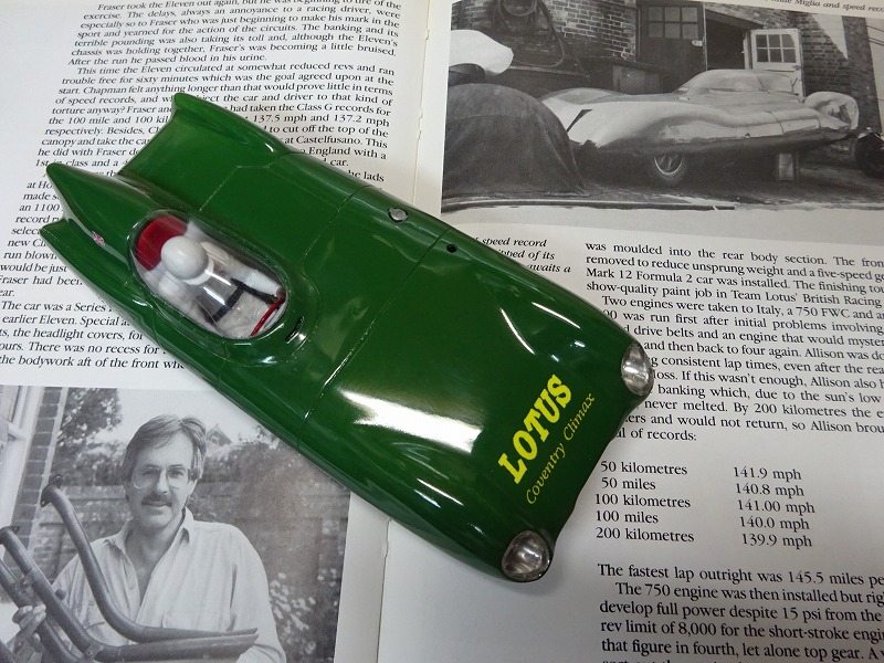 当時2台以上製作されたと云われている11のレコード・ブレイカーだが、探した資料写真では不明な点も多く、ボディーカラーを初めとして大分適当な車になっている・・・。 (一応、モスがモンザでリアカウルを吹き飛ばした時の車がモデルになっている。)