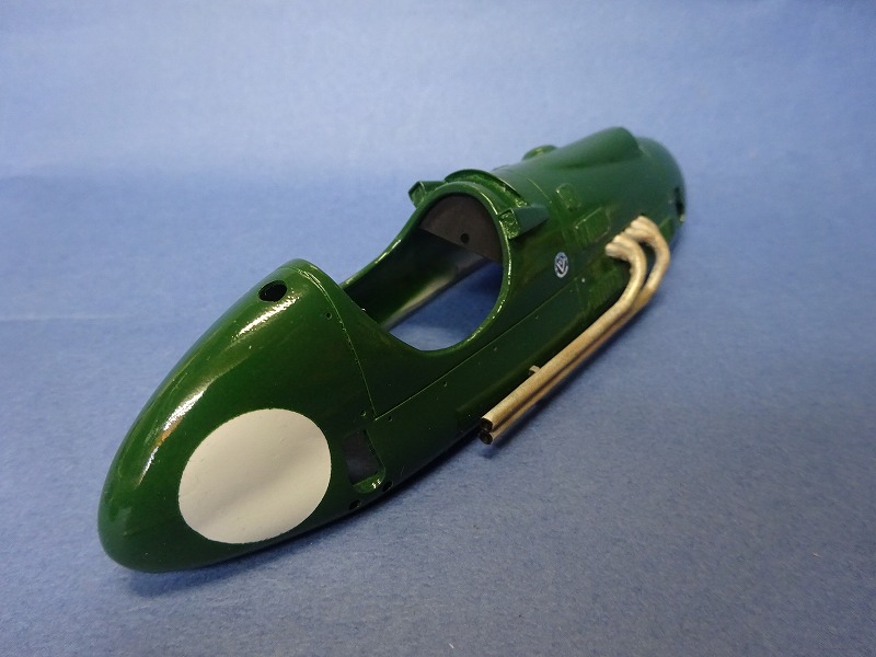 クーパーブリストルのボディも大分前に「大体こんな感じかな~?!」と云った安直な感じで製作して放置していたボディーシェルだったので、いざ作り始めてみると色々な所に問題(ボディーシェル自体があまり正確ではない)が存在し、おまけに当時の実車のボディー形状もまちまちだし、カラーも判らずで・・・、大分適当な車になってしまっている!