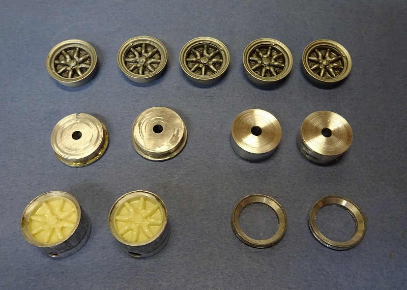 一番の問題点は、レーシング使用にするには13インチのワタナベ風の8スポークのホイルを作る事であった・・・。 このホイルデザイン(パターン)は英国車にも国産のツーリングカーやGTにも良く合う私の一番好きなホイルである・・・。