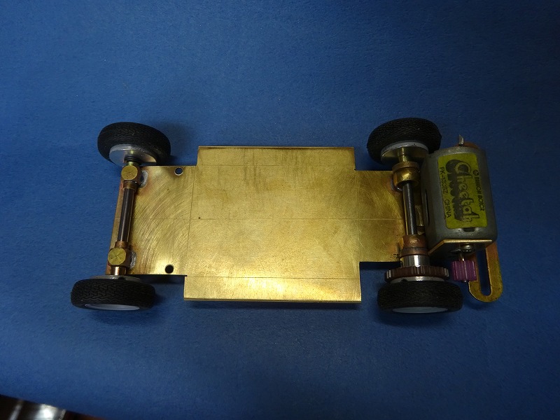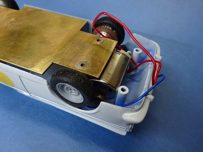 以下はいつも通りの製作過程なのだが、今回はタイヤ径が小さいので軸受けパーツも短めに半田付けしなければならない・・・。 おまけにボディーに付いているポストを生かそうと思っていたのでフレームの穴あけにはちょっと苦労した。 このボディーに付いているマウントポストは前後で長さ(高さ)が違うのだ!