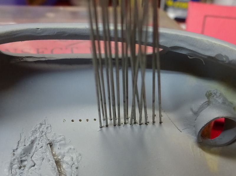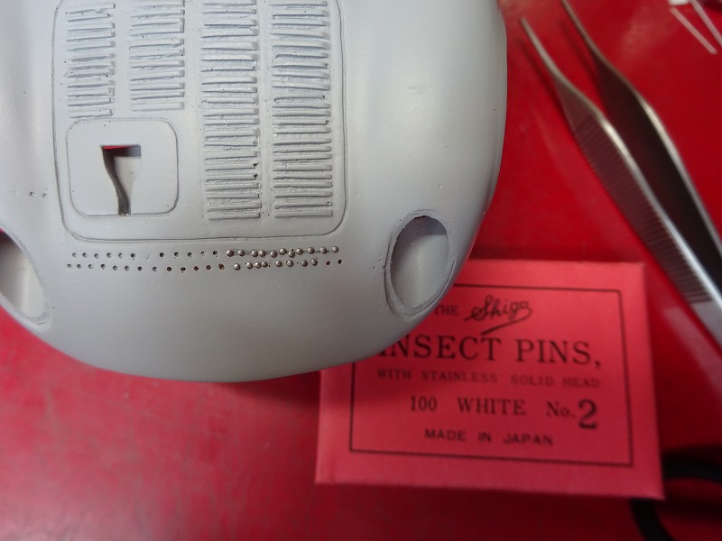 時間と根気があればフロントのウエザーストリップとリアのスクリーンの建付けも実車と同じ様に製作してみたいとの願望はあったのだが、300本の虫ピンで半分挫折しかけ、内装の取り付けで再び挫折しかけていた。