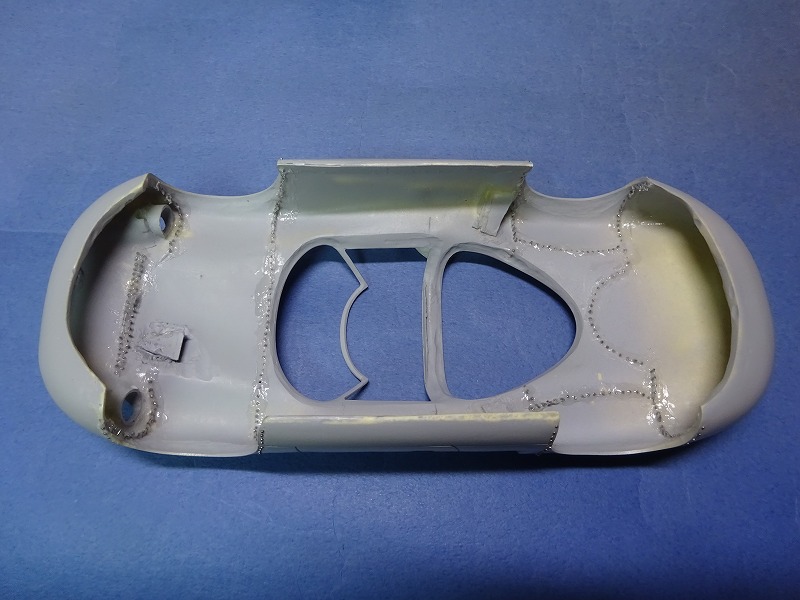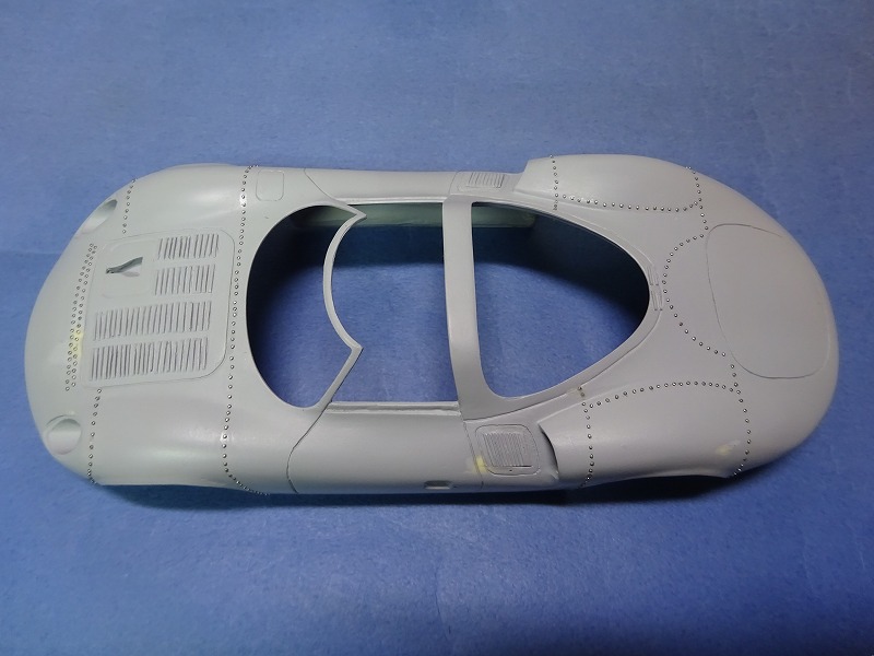 多くの虫ピンがボディー上に存在するので、本来は塗装後のクリアかけはウレタンが望ましいのだが、昔と同じようにラッカー系のクリアでコーティングしてあるので、磨きは殆どしていない。