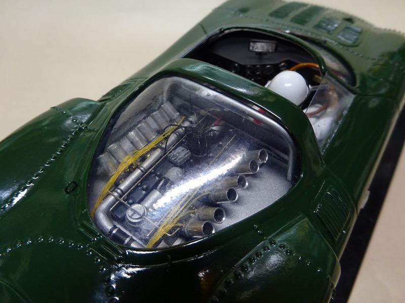 スピナーも良い物が見つからなかったし、テールランプも合いがいまいちだ。 ドアハンドルは洋白線を叩いて薄くしたものを取り付け、エグゾーストパイプも実車とは異なる形で取り付けてある。