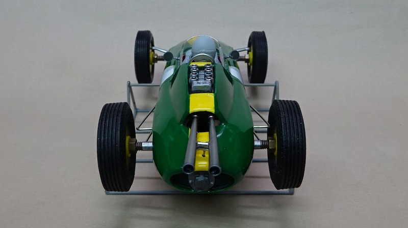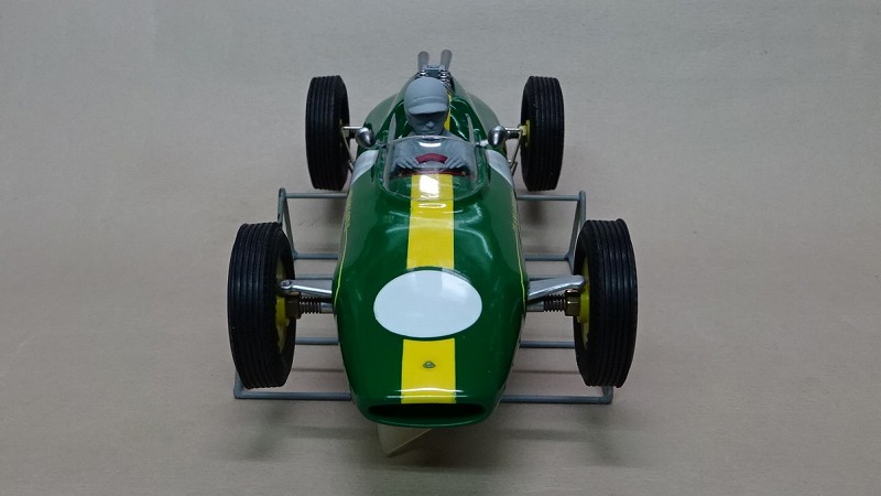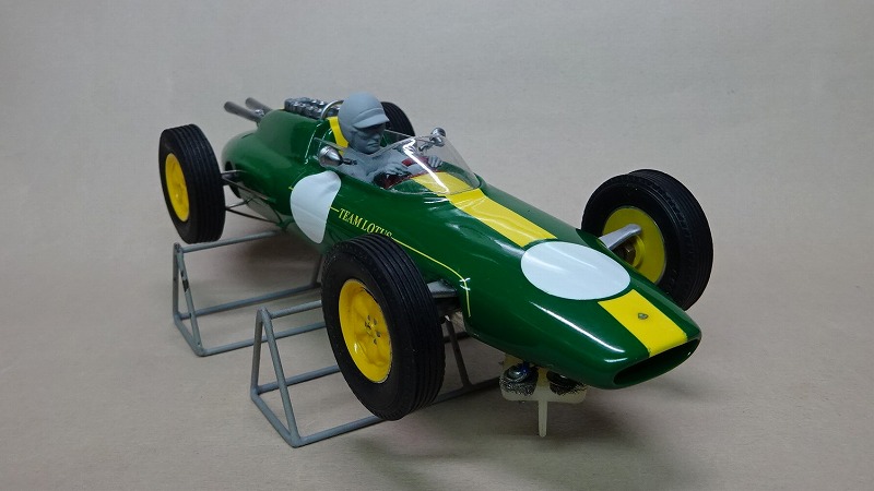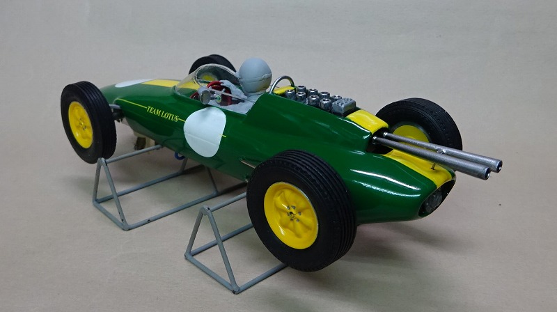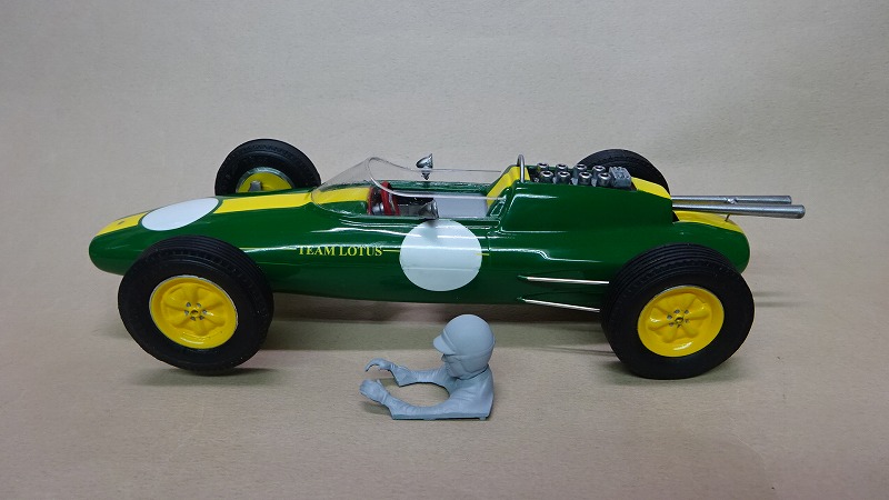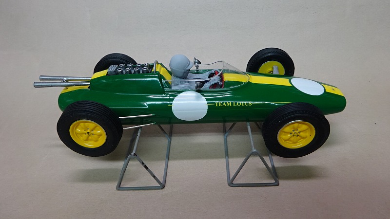 今回製作したロータス25はあくまで “どんな感じになるのかな~?” と云う実験的なボディーだったので、ボディーカラーは気にせず噴いてしまった。  ・・・よくよく考えてみれば極初期型の25には黄色のストライプは入らない。(苦笑)