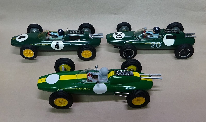 上の写真は20年程前にジャンクから製作したオリジナルボディーのレヴェルのロータス25を引っ張り出し比較するためにUPしてみた。