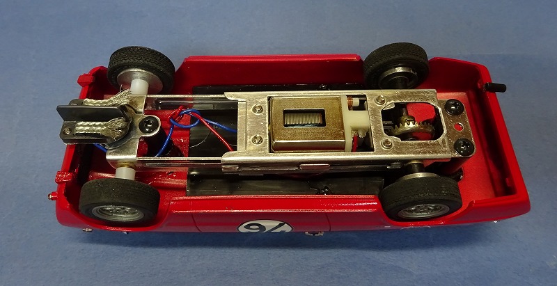 スタティックの車であればドライバーは乗らないので、2台ともモンザレッドを塗装しておしまいに出来るのだが、スロットカーの場合はドライバーが乗るので車の作りもおのずと異なってくる。