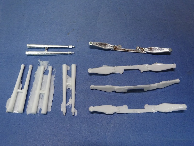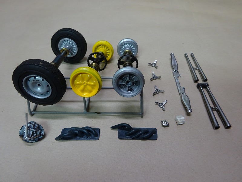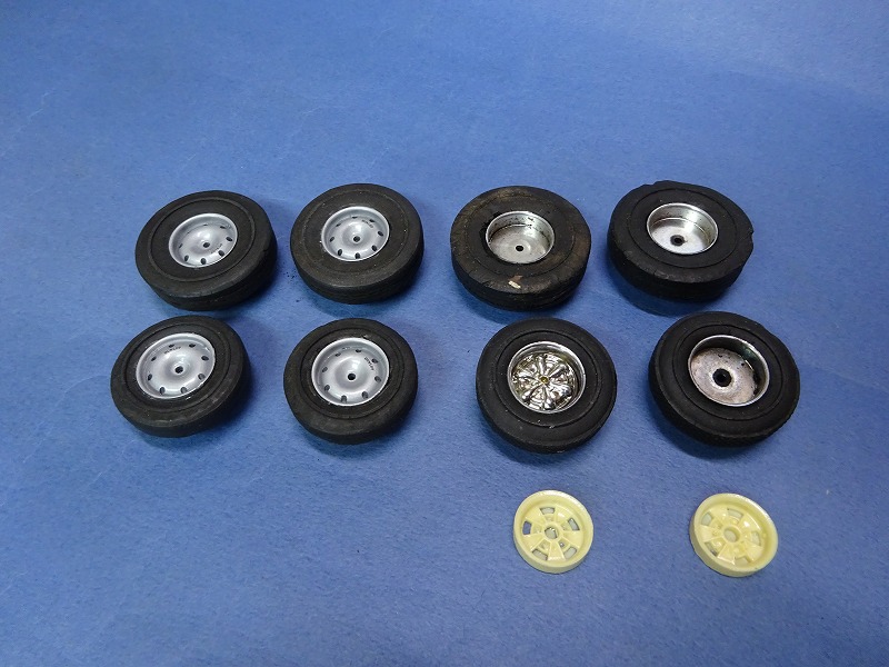 シャーシーではトーホーのオリジナルのプラ製のホイルは使うことが出来なかったので、レジン取りしたホイルパターンをレヴェルのデッドストックのリアタイヤで抑え込んでいるので、キットを製作した時と雰囲気はそれほど違わないのではないか?と思われるが・・・。